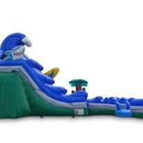 This 20’ Tropical Curve Inflatable Dual Slide Wet/Dry is the coolest, newest Summer attraction. The dual-lane allows for riders to safely go down at the same time into the pool area. The slides are different heights, for the more daring riders to ride down the tallest point. It takes under 30 minute set up time. You will need a hose connected to the home or establishment. It will need to reach to the inflatable. The curved slide gives riders the extra thrill as they go down! This tropical theme will fit any backyard Summertime party. Enjoy the slide wet or dry, the best part is you can have fun with both!Slides22 Tropical Curve Inflatable Dual Slide Wet/Dry